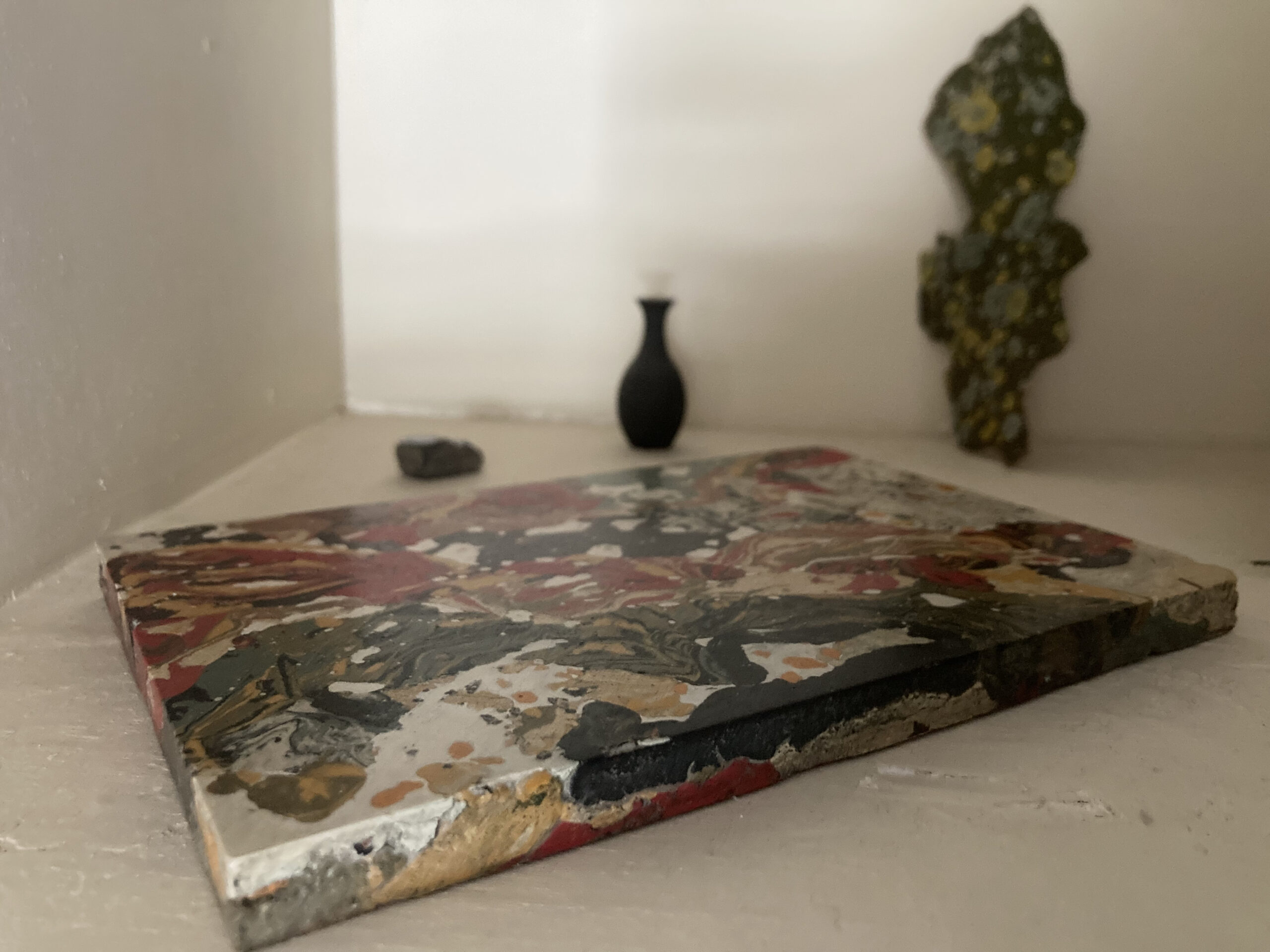This piece of scagliola was designed to hang without a frame, directly on the wall in Nabil’s new elegant flat.